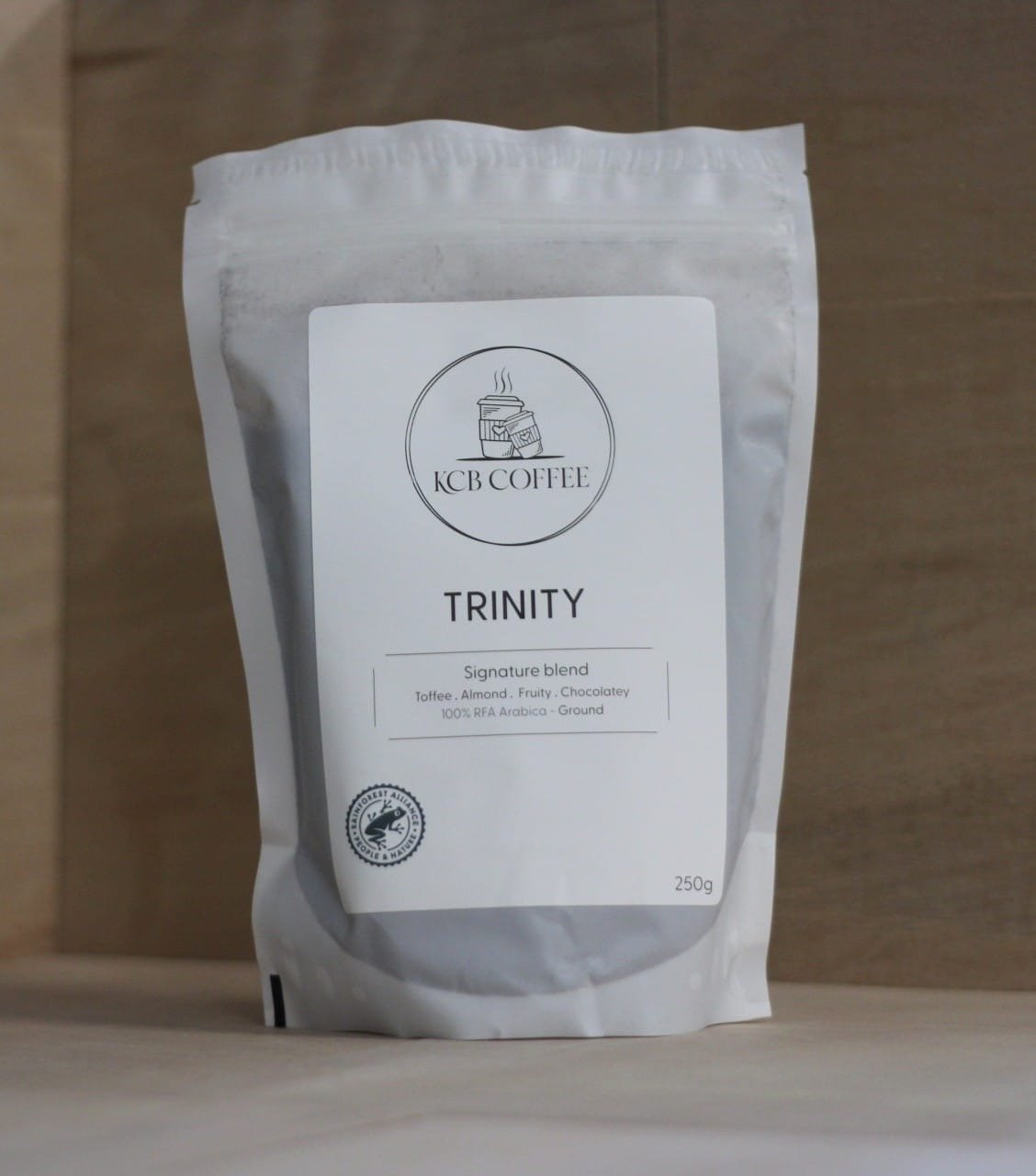 100% RFA arabica. Toffee, almond, fruity and chocolatey.